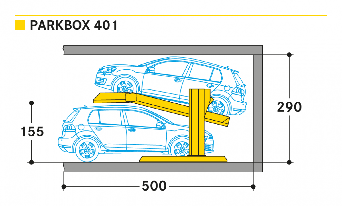 Parkbox 401 increases the number of parking spaces even in tight areas. Dependent parking on two levels above each other without pit.