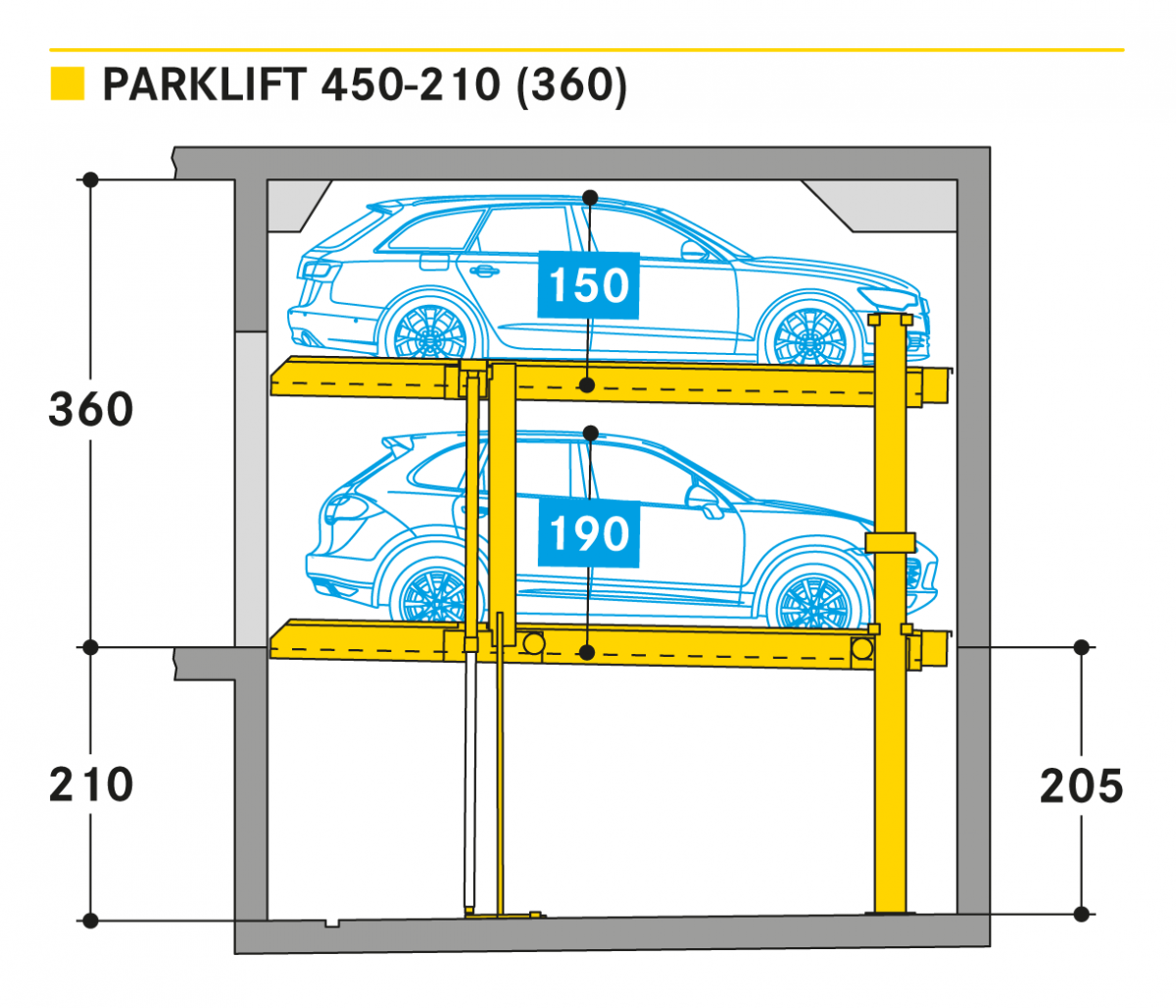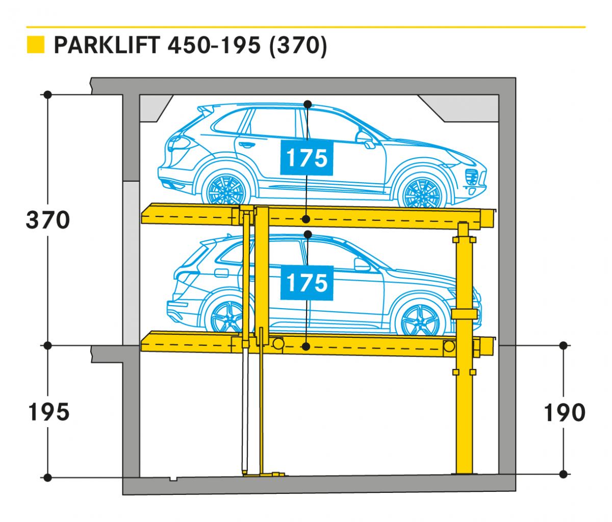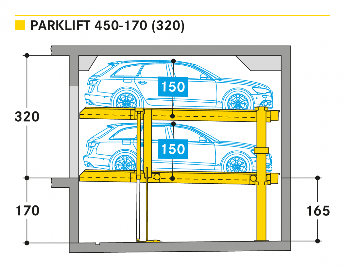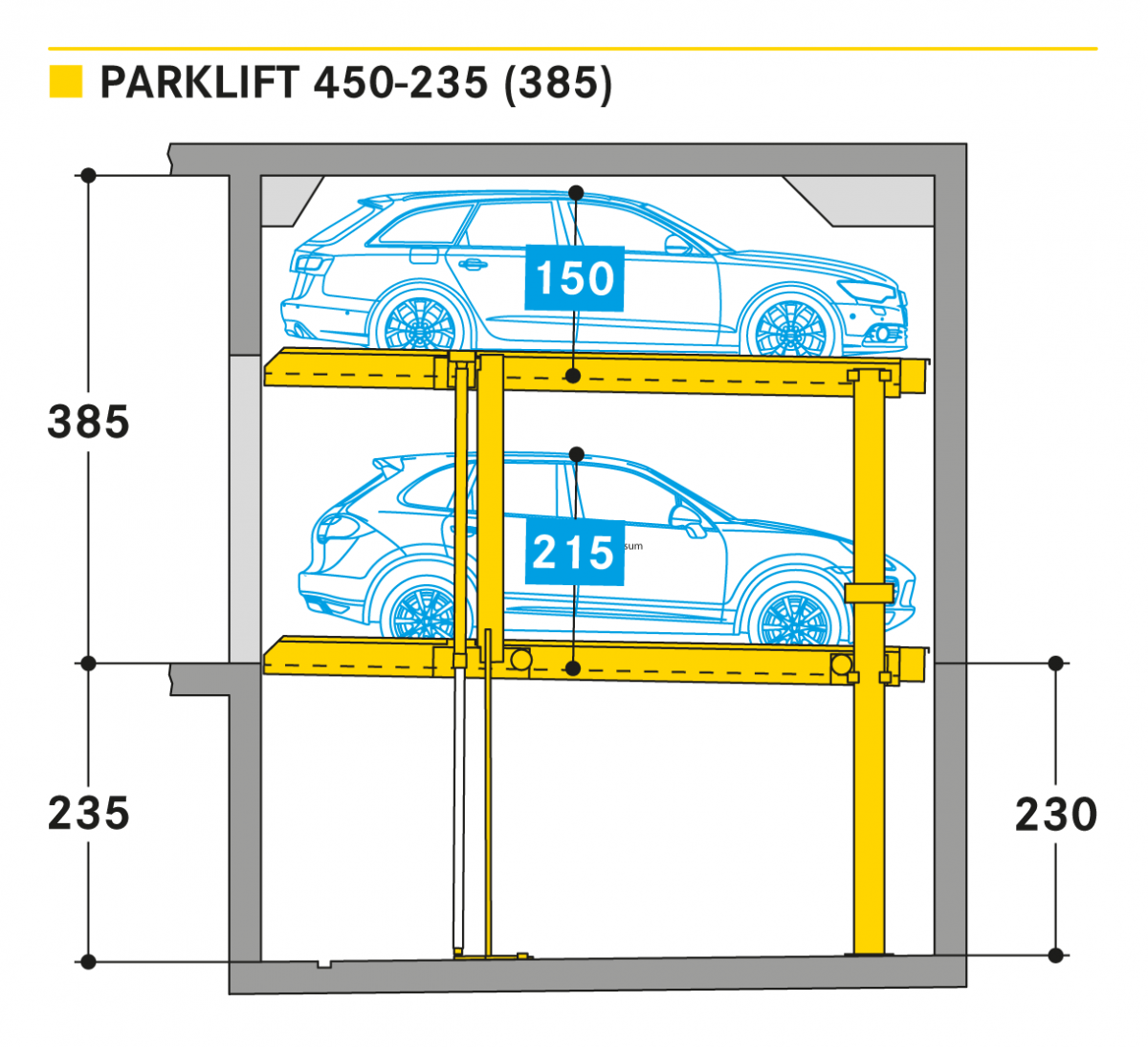 The new Parklift 450 is designed to replace its predecessor, the Parklift 440. The advantages of this newly redeveloped system lie in the reduced installation dimensions, while the vehicle dimensions remain unchanged.