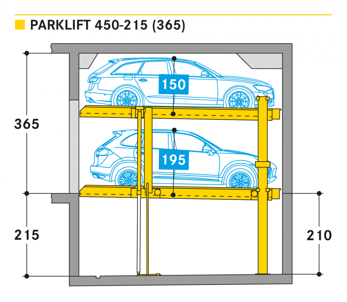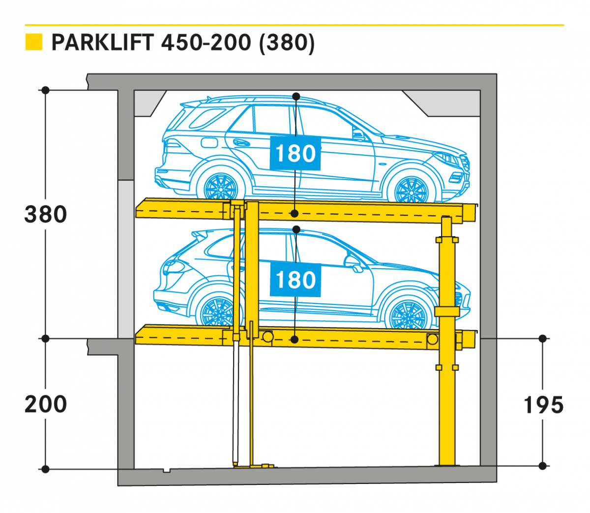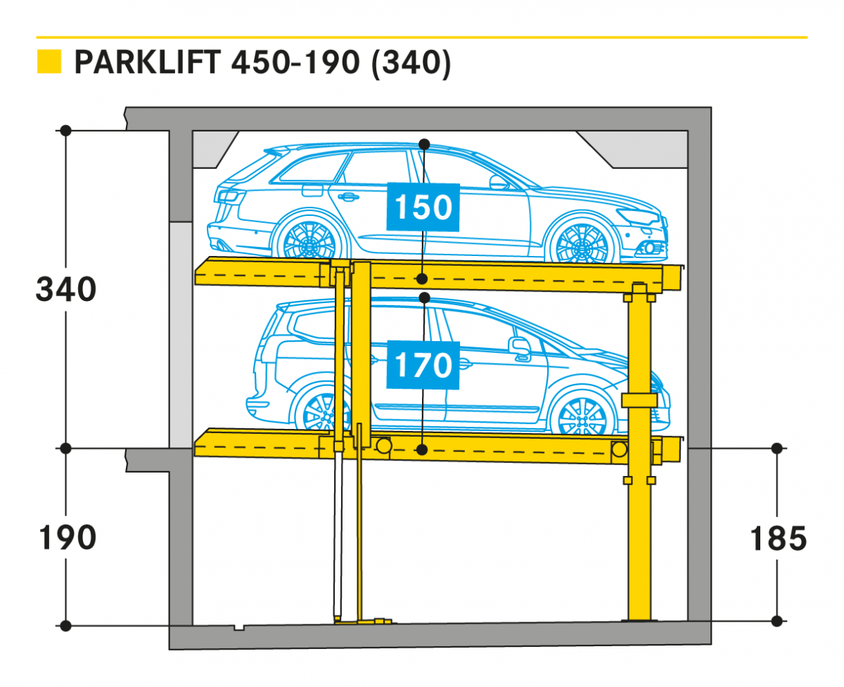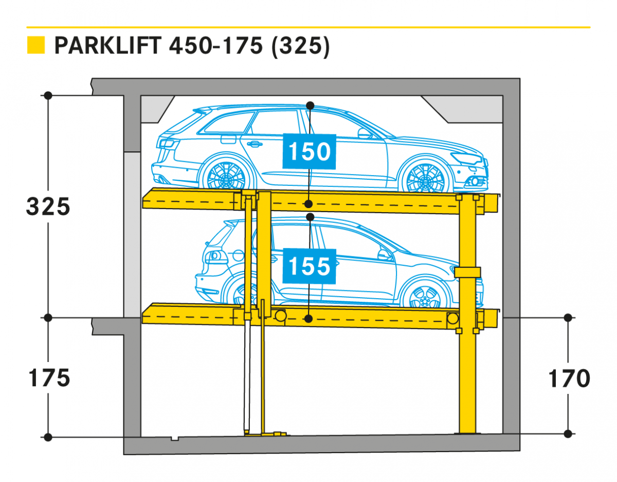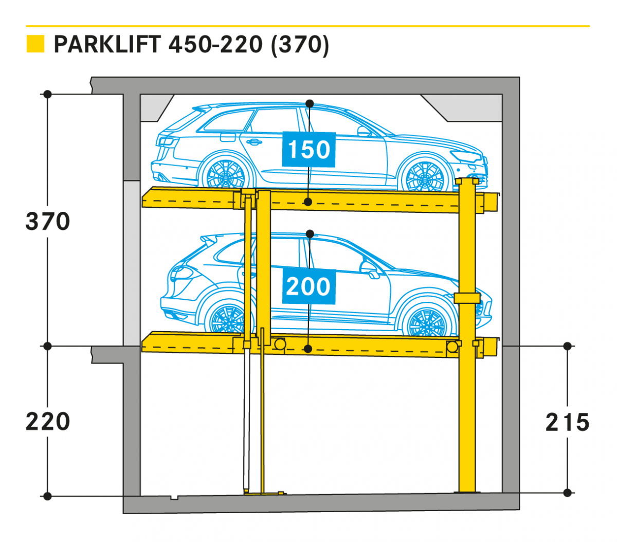The new Parklift 450 is designed to replace its predecessor, the Parklift 440. The advantages of this newly redeveloped system lie in the reduced installation dimensions, while the vehicle dimensions remain unchanged.