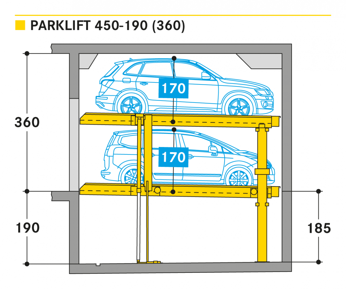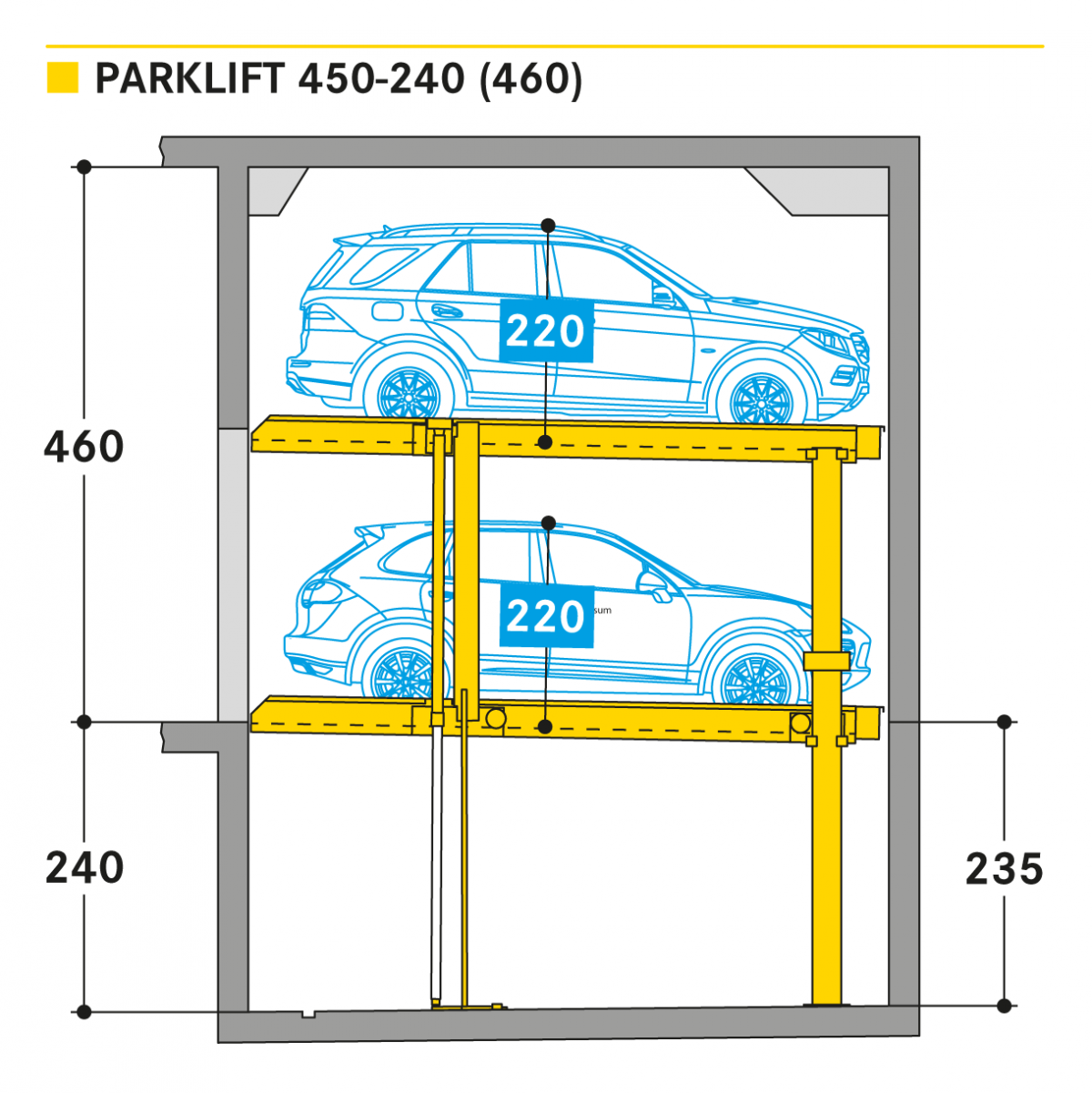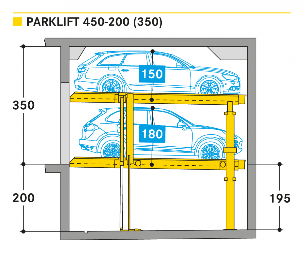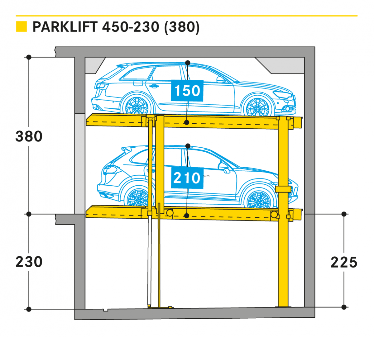 The new Parklift 450 is designed to replace its predecessor, the Parklift 440. The advantages of this newly redeveloped system lie in the reduced installation dimensions, while the vehicle dimensions remain unchanged.