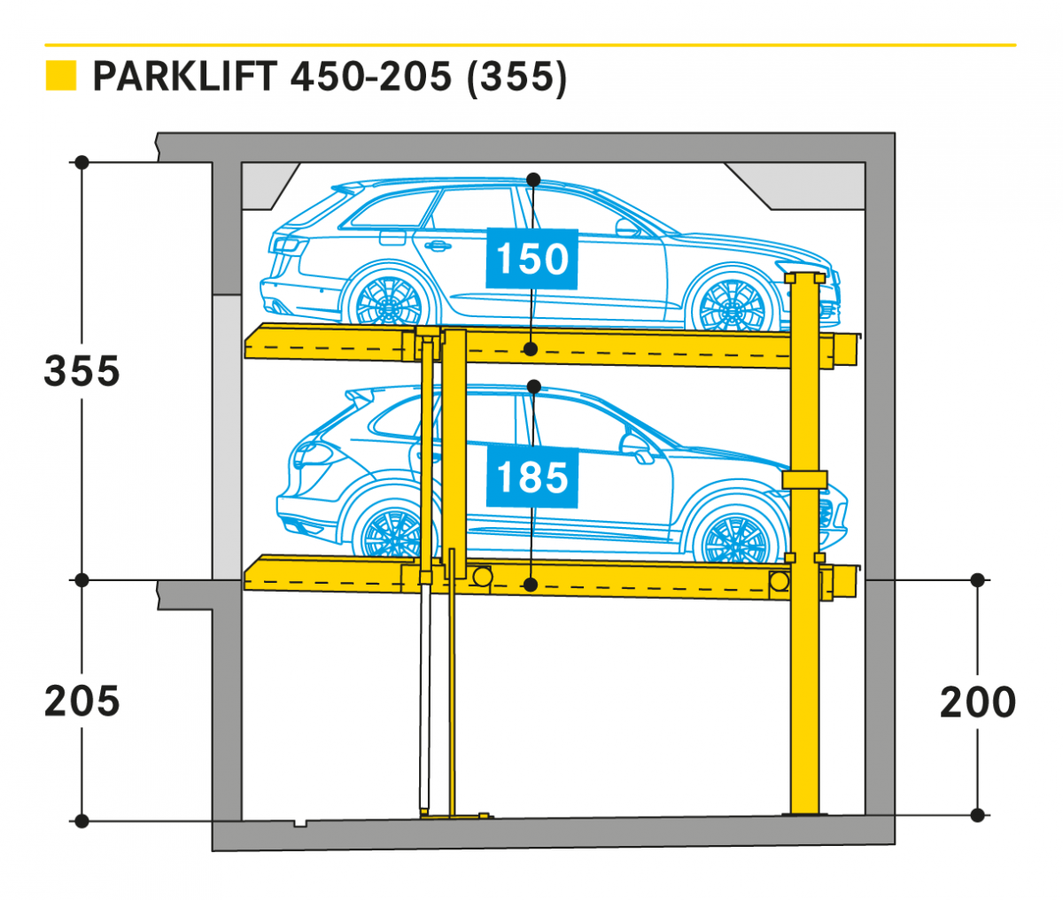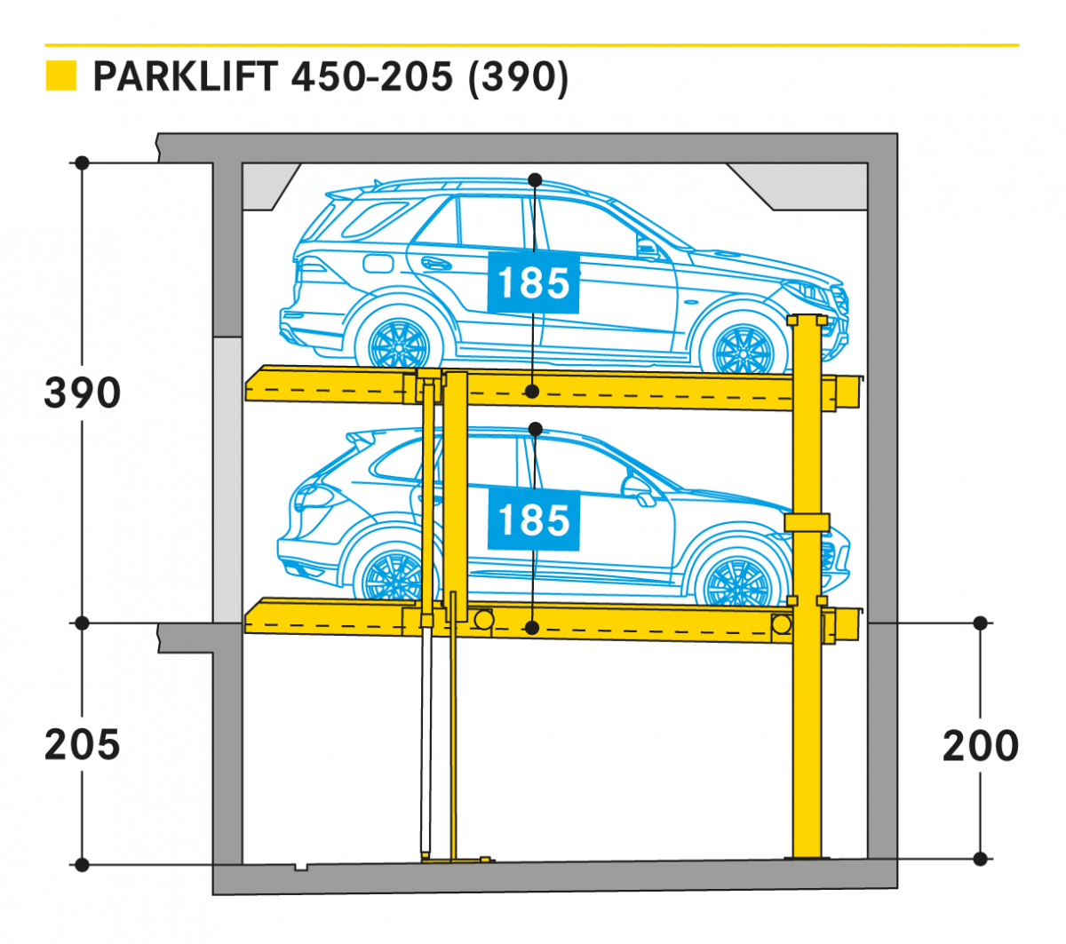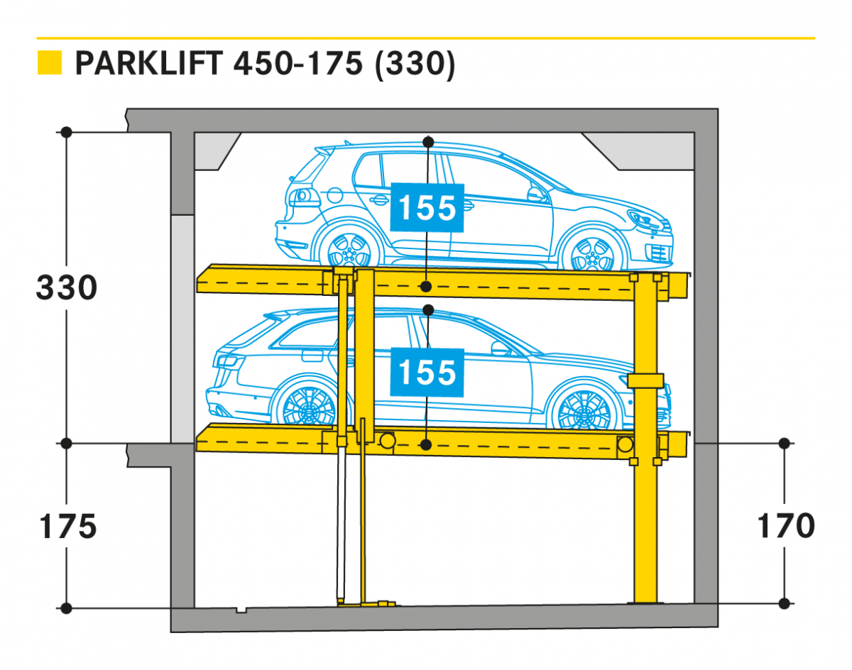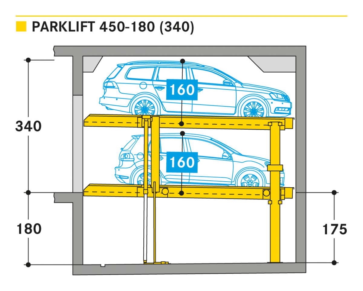 The new Parklift 450 is designed to replace its predecessor, the Parklift 440. The advantages of this newly redeveloped system lie in the reduced installation dimensions, while the vehicle dimensions remain unchanged.